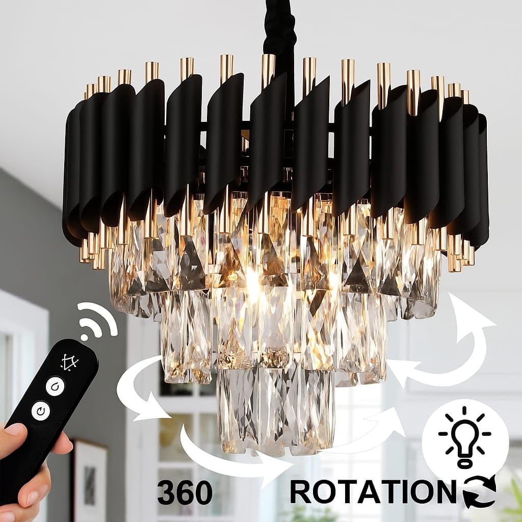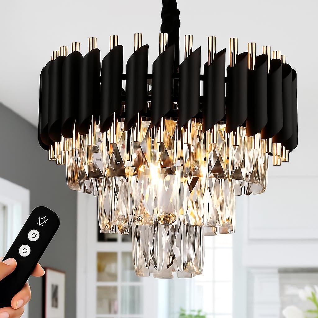 - [3-Tier Modern Crystal Chandelier] The matte gold frame with beautiful k9 crystal makes this dining room light fixture look gorgeous and elegant. The gold chandeliers K9 crystal strings have better light transmission than ordinary glass. This modern crystal chandelier combines luxury and contemporary elements with eye-catching results, this crystal chandeliers is a piece of art which presents itself in an elegant look .