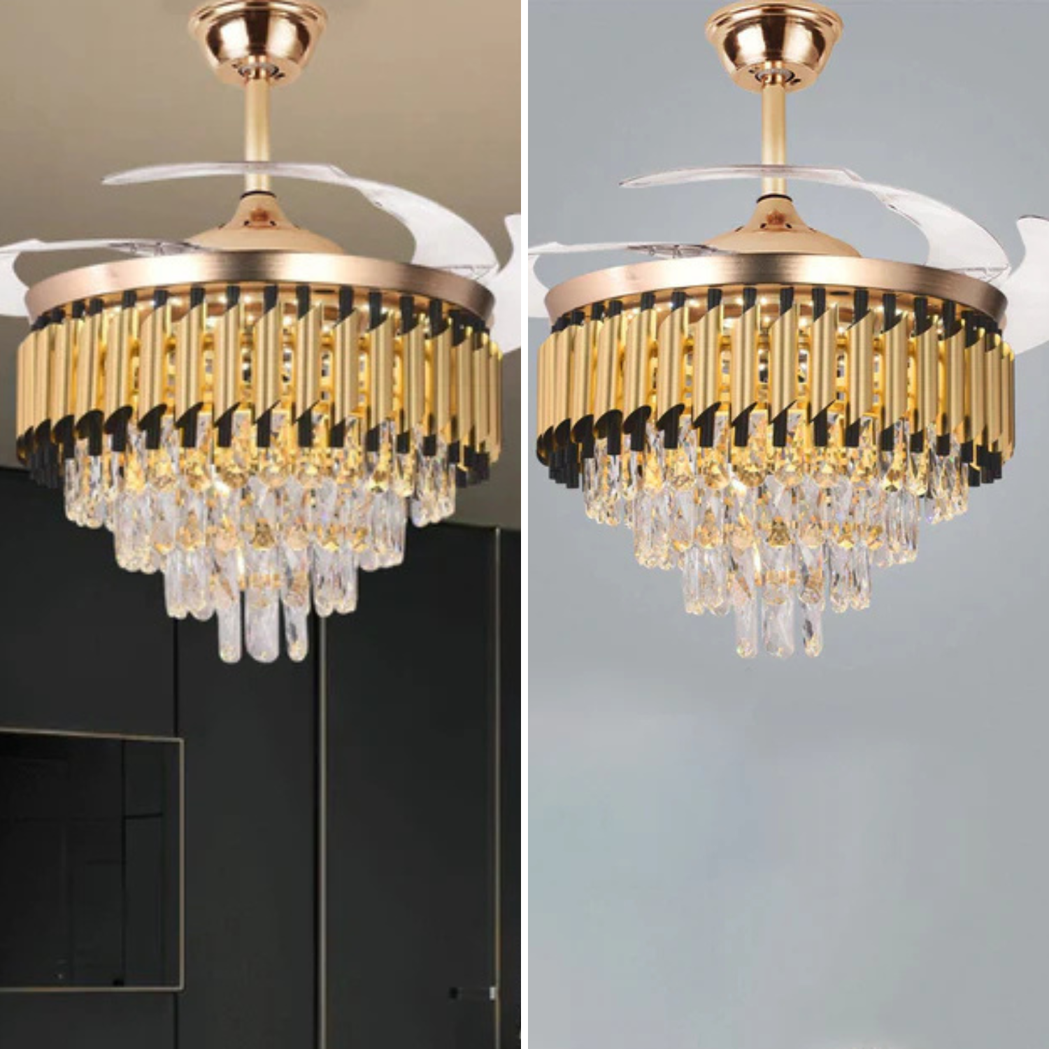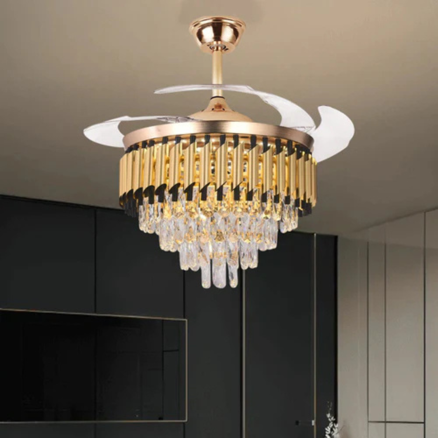 This is a modern and stylish intelligent ceiling fan light with exquisite workmanship. Enclosed design, three levels of wind speed adjustment, smooth operation, silent working, dimmable, with remote control, easy to operate. Perfect for living room, dining room, bedroom and office, etc.