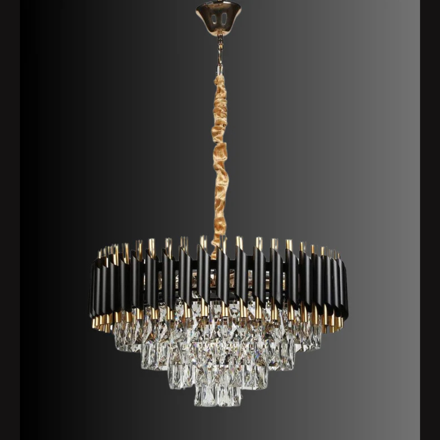 Instantly upgrade your dining room, entryway, or living area with this classy chandelier, which features light-catching Crystals and modern design metal. The matte black finish gives off a slight gleam and French Gold finish gives royal outlook.
